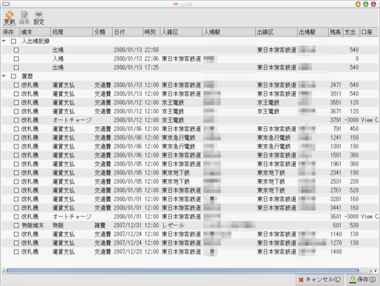 - graif の |ファイル(F)|プラグイン(P)|Suica| から起動して「更新」ボタ